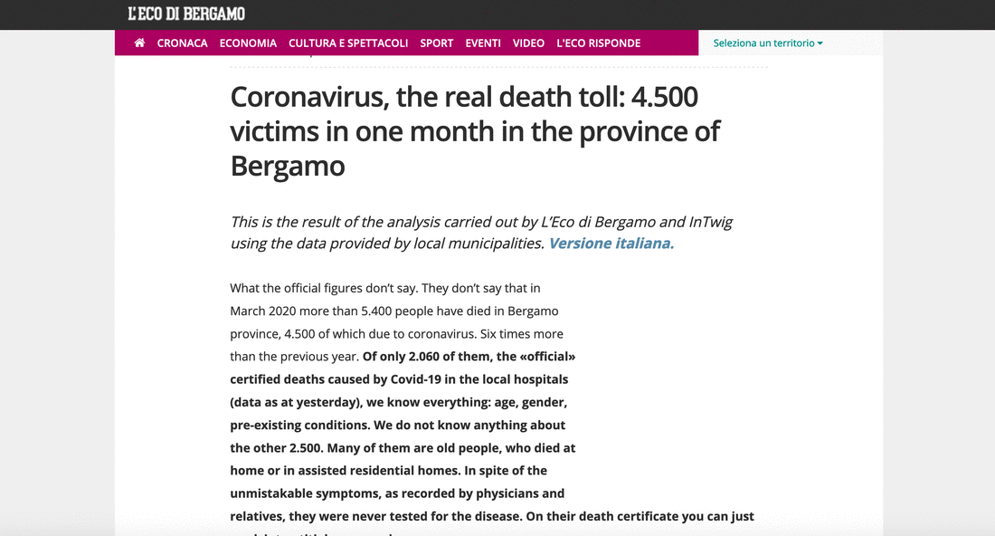 La cronaca locale di Bergamo, grazie al lavoro di Isaia Invernizzi, fa riflettere la stampa internazionale.