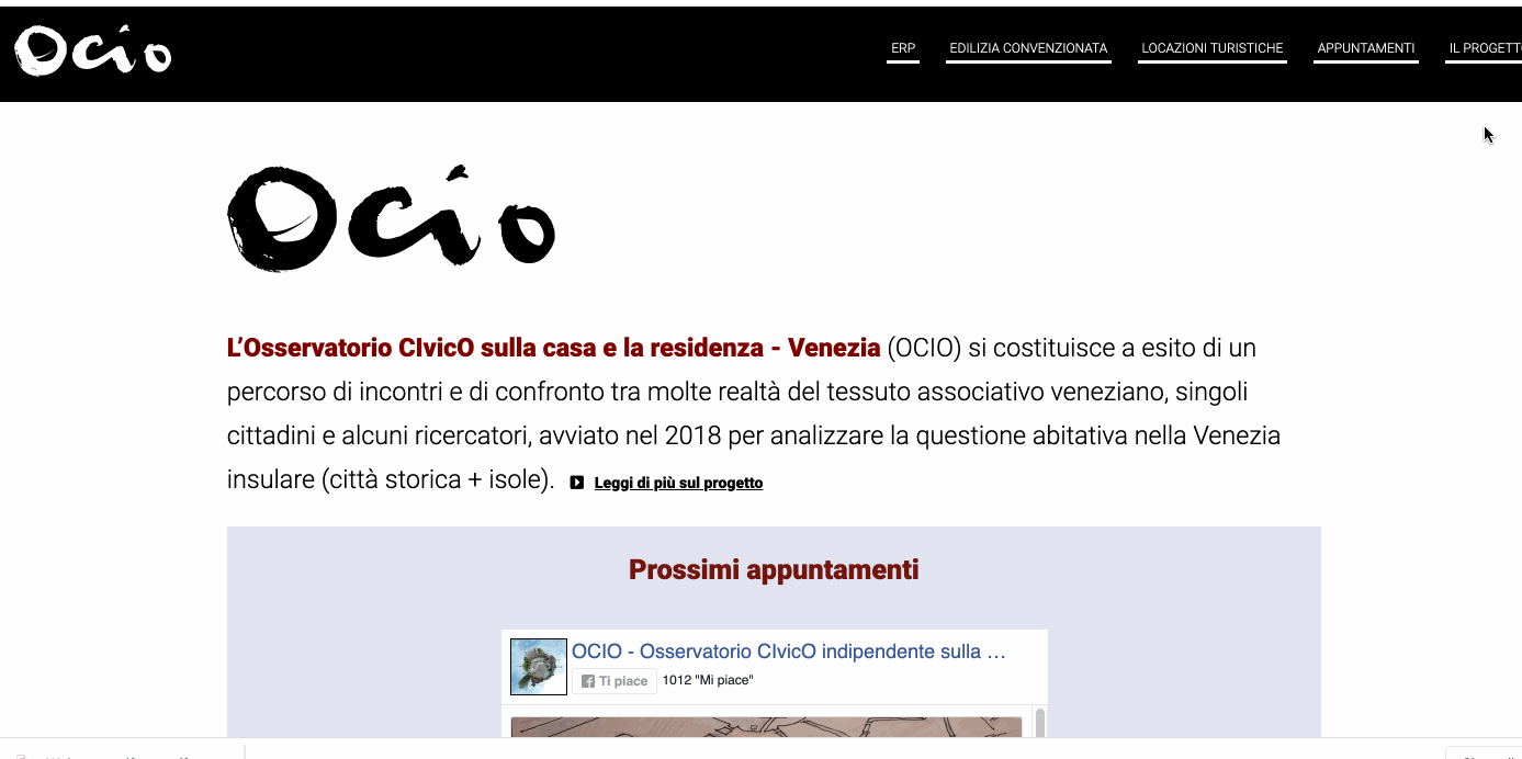 Attivista e liberatrice di dati per l'Osservatorio civico OCIO. Qui sopra mostrati i progetti: monitoraggio edilizia convenzionata ; monitoraggio locazioni turistiche; inchieste Venezia in affitto(breve)